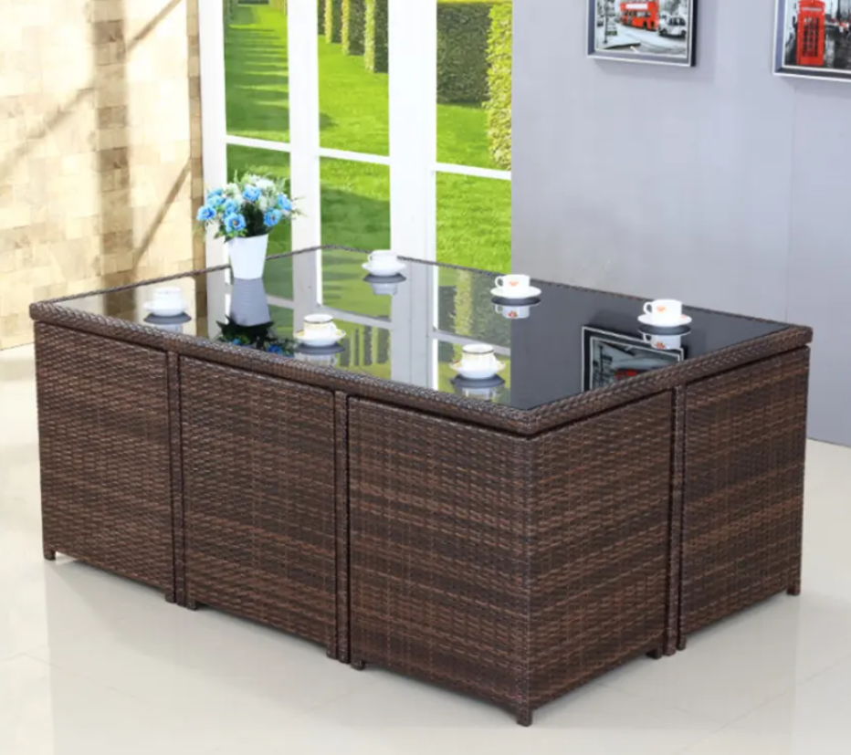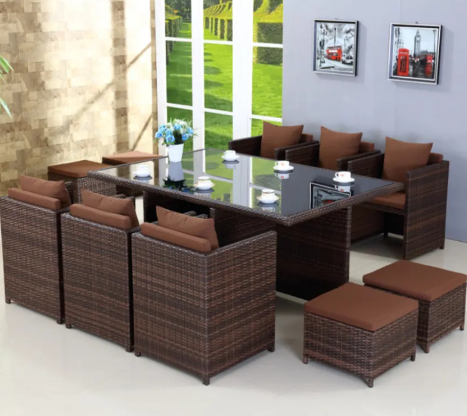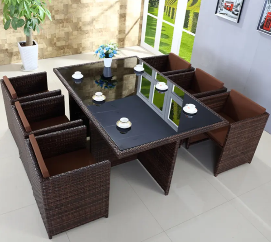 Upgrade your outdoor space with the Modern Garden Rattan Furniture Set, where style meets durability. This handwoven wicker table and chair set blends contemporary design with high-performance materials, featuring a sleek cast aluminum and stainless steel frame, topped with thick, waterproof cushions (5–10 cm) for maximum comfort.